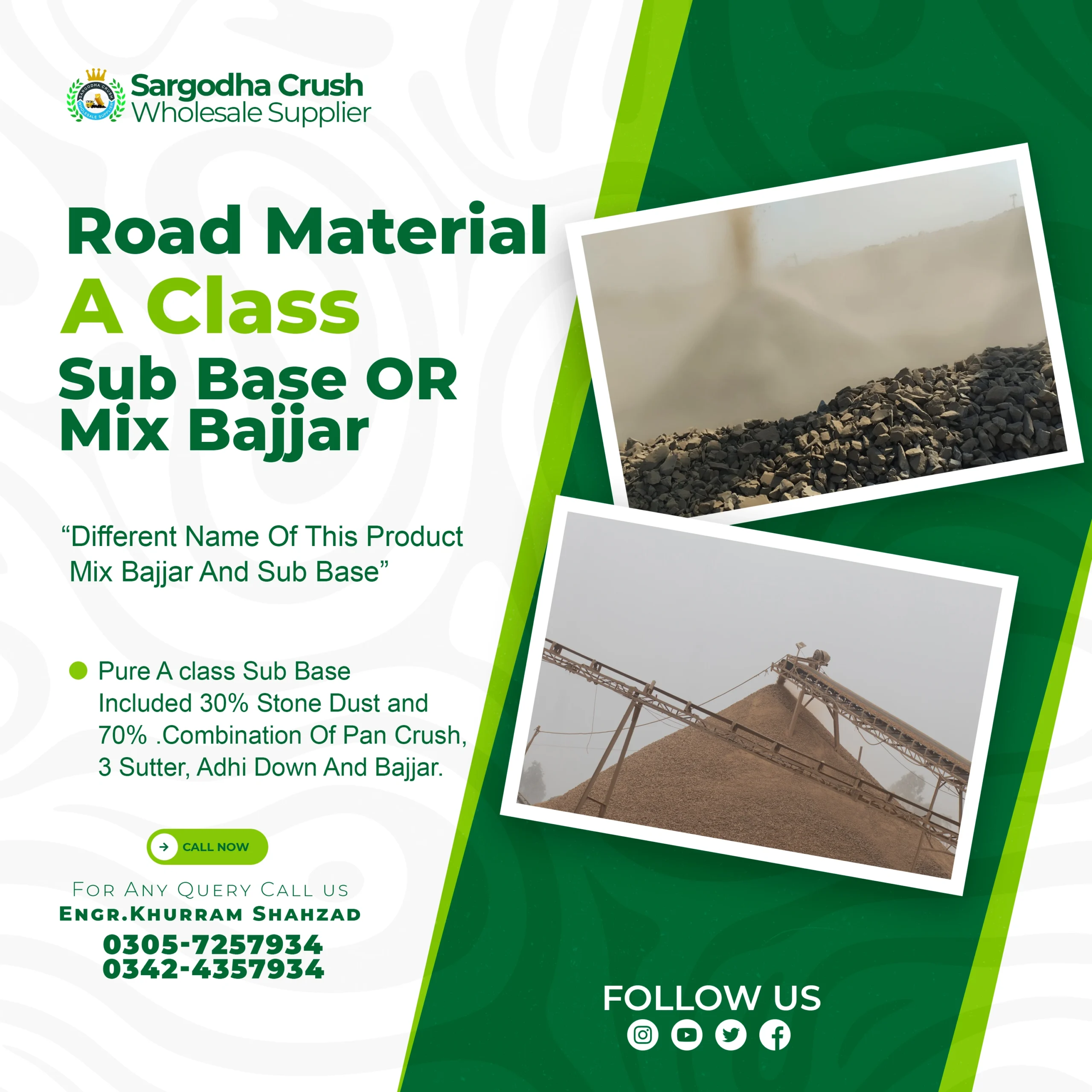 Pure A class Sub Base Included 30% Stone Dust and 70% Combination Of Pan Crush, 3 Sutter, Adhi Down And Bajjar